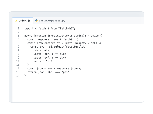 Use the IDE to showcase a simulated integrated developer environment, complete with a code editor and AI chat that's intended to enhance code representation in marketing contexts.